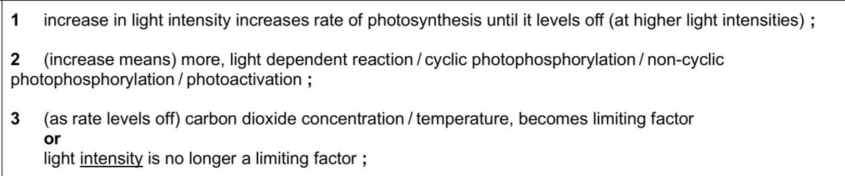 13.2.2 explain the effects of changes in light intensity, carbon dioxide concentration and temperature on the rate of photosynthesis