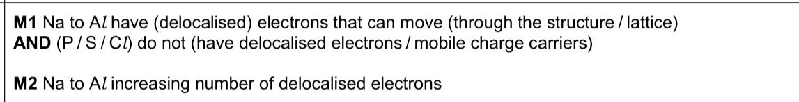 Elements in Period 3 of the Periodic Table show trends in their properties. (b)The relative electrical conductivities of the Period 3 elements are shown in Fig.1.1. . . . . [2]