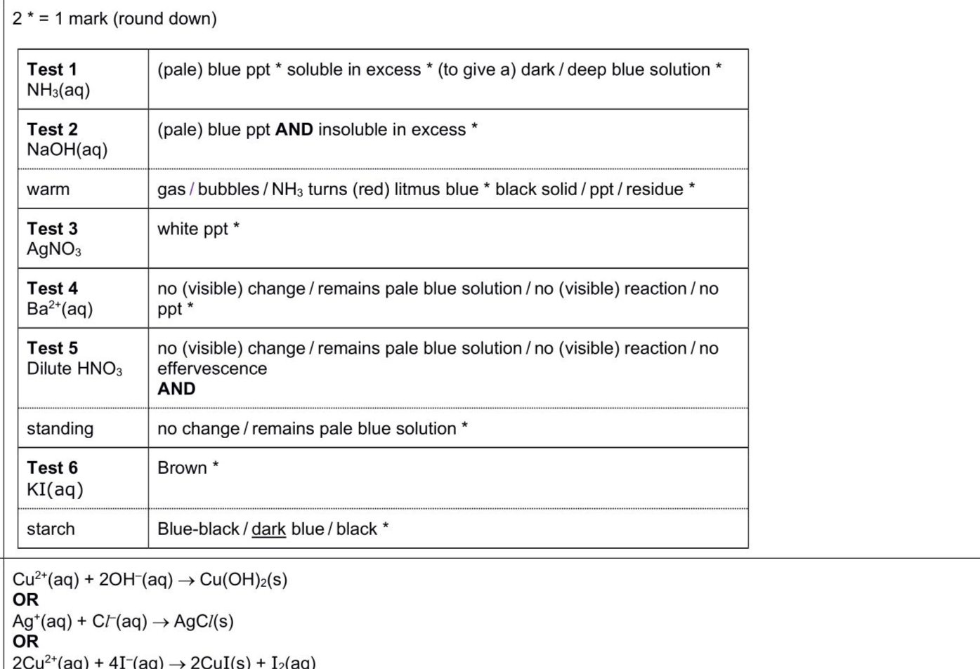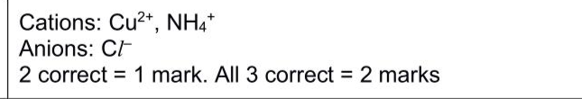 (a)FA 7 is a solution containing two cations and one anion.All of the ions are listed in the Qualitative analysis notes. (i)Carry out the following tests and record your observations in Tables 3.1 and 3.2.For each test use a 1 cm depth of FA 7 in a test-tube unless the solution requires heating. (ii) Write an ionic equation for a reaction in (a)(i) that resulted in the formation of a precipitate. Include state symbols. (iii) Give the formula of each ion present in FA 7. If you cannot identify an ion, write 'unknown.' cations and anion