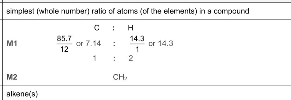 $$\(6 \quad \mathbf{P}, \mathbf{Q}\)$$ and $$\(\mathbf{R}\)$$ are three different hydrocarbon molecules. Define empirical formula. (ii) Hydrocarbon $$\(\mathbf{P}\)$$ contains $$\(85.7 \%\)$$ by mass of carbon. Calculate the empirical formula of $$\(\mathbf{P}\)$$. Show your working. empirical formula of $$\(\mathbf{P}=\)$$ (iii) Molecules of $$\(\mathbf{P}\)$$ have straight chains. Name the homologous series to which $$\(\mathbf{P}\)$$ belongs.