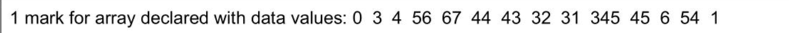A program sorts the data in the 1D array DataArray and searches DataArray for specific values. DataArray stores 14 integer values and is declared local to the main program. Write program code to create DataArray and initialise it with the following data values in the order they are written: