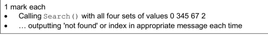 A program sorts the data in the 1D array DataArray and searches DataArray for specific values. DataArray stores 14 integer values and is declared local to the main program. The main program needs extending to call Search () with the sorted array four times: - the first time to find the index of the integer 0 - the second time to find the index of the integer 345 - the third time to find the index of the integer 67 - the fourth time to find the index of the integer 2 If the integer is found in the array, output an appropriate message that includes the index. If the integer is not found, output that it was not found. Write program code to extend the main program. (ii) Test your program. Take a screenshot of the output(s).
