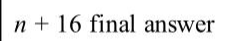 A bag contains $$\(n\)$$ red balls and 16 green balls. Write down an expression for the total number of balls in the bag. .............................................