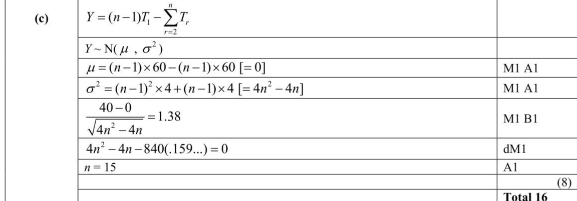 A company makes cricket balls and tennis balls. The weights of cricket balls, $$\(C\)$$ grams, follow a normal distribution $$\[ C \sim \mathrm{N}\left(160,1.25^{2}\right) \]$$ Three cricket balls are selected at random. find $$\(n\)$$. (8)