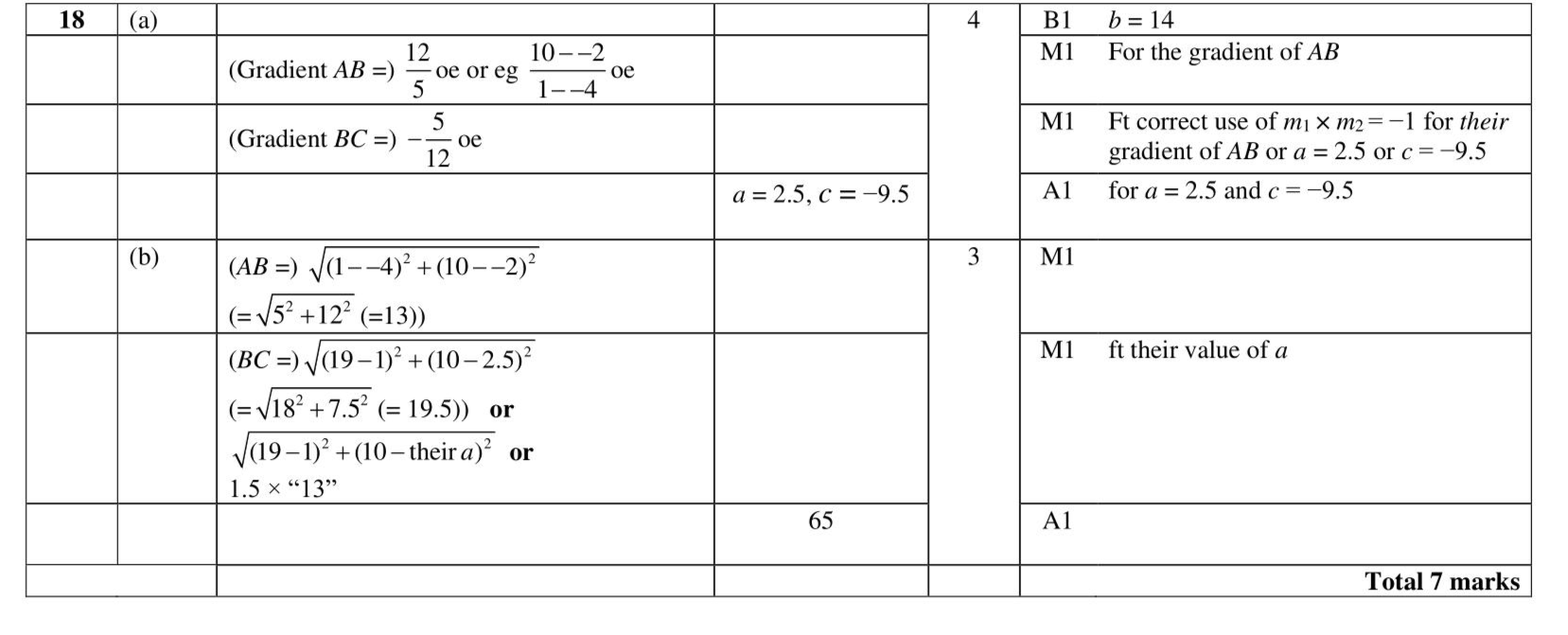 A rectangle $$\(A B C D\)$$ is to be drawn on a centimetre grid such that $$\(A\)$$ has coordinates $$\((-4,-2)\)$$ $$\(B\)$$ has coordinates $$\((1,10)\)$$ $$\(C\)$$ has coordinates $$\((19, a)\)$$ $$\(D\)$$ has coordinates $$\((b, c)\)$$ (a) Work out the value of $$\(a\)$$, the value of $$\(b\)$$ and the value of $$\(c\)$$. $$\(a=\)$$ $$\(b=\)$$ $$\(c=\)$$ (4) (b) Calculate the perimeter, in centimetres, of rectangle $$\(A B C D\)$$. $$\(\mathrm{cm}\)$$ (3)