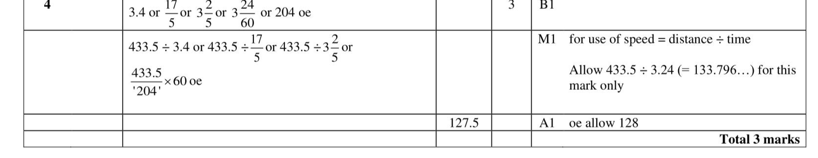 A train journey from Paris to Amsterdam took 3 hours 24 minutes. The total distance the train travelled was $$\(433.5 \mathrm{~km}\)$$. Work out the average speed of the train. Give your answer in kilometres per hour. $$\(\mathrm{km} / \mathrm{h}\)$$
