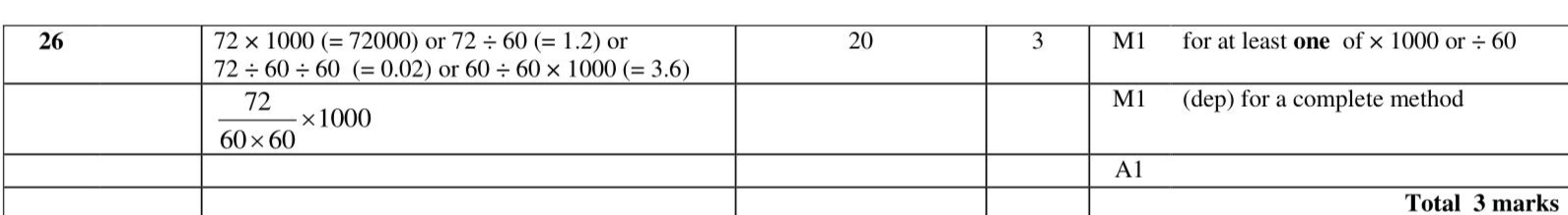 Change a speed of 72 kilometres per hour to a speed in metres per second. metres per second