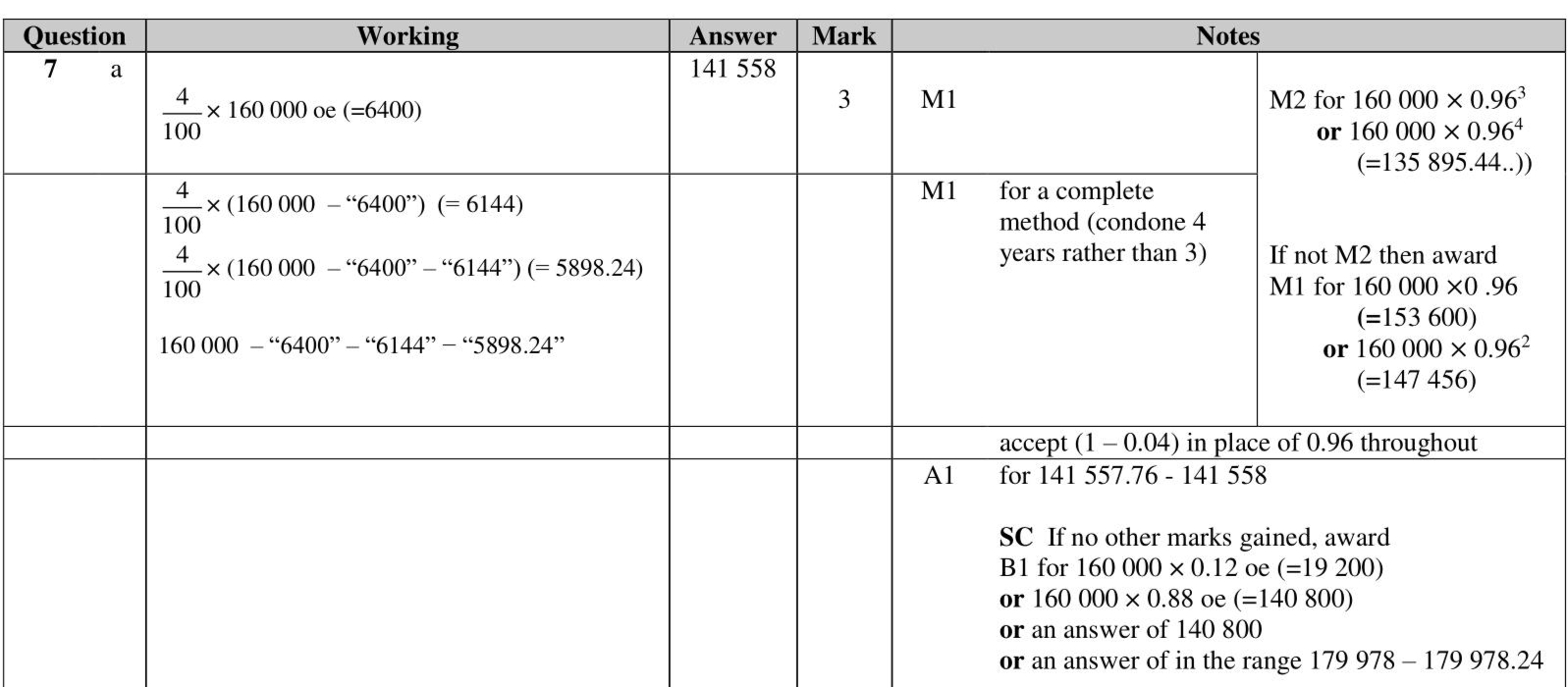 Chao bought a boat for HK $$\(\$ 160000\)$$ The value of the boat depreciates by $$\(4 \%\)$$ each year. (a) Work out the value of the boat at the end of 3 years. Give your answer correct to the nearest HK\$. HK\$. (3)
