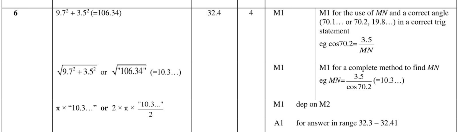 Diagram NOT accurately drawn $$\(M, N\)$$ and $$\(P\)$$ are points on a circle, centre $$\(O\)$$. $$\(M O N\)$$ is a diameter of the circle. $$\(M P=3.5 \mathrm{~cm}\)$$ $$\(P N=9.7 \mathrm{~cm}\)$$ Angle $$\(M P N=90^{\circ}\)$$ Work out the circumference of the circle. Give your answer correct to 3 significant figures. $$\(\mathrm{cm}\)$$