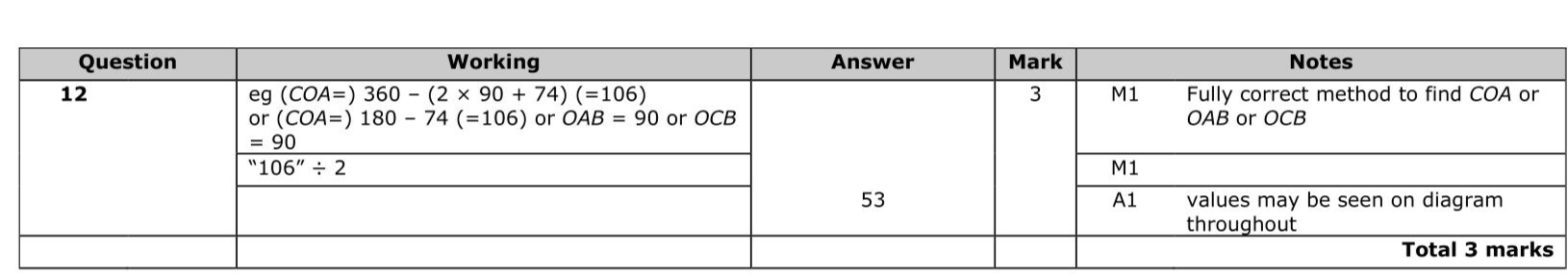 Diagram NOT accurately drawn $$\(A, C\)$$ and $$\(D\)$$ are points on a circle, centre $$\(O\)$$. $$\(A B\)$$ and $$\(C B\)$$ are tangents to the circle. Angle $$\(A B C=74^{\circ}\)$$ Work out the size of angle $$\(A D C\)$$. Show your working clearly.