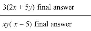 Factorise. (i) $$\(6 x+15 y\)$$ ............................................. (ii) $$\(x^{2} y-5 x y\)$$ .............................................