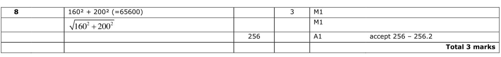 From point $$\(A\)$$, Stanley walks $$\(200 \mathrm{~m}\)$$ due east to point $$\(B\)$$. From $$\(B\)$$, he then walks $$\(160 \mathrm{~m}\)$$ due south to point $$\(C\)$$. Work out the length of $$\(A C\)$$. Give your answer correct to 3 significant figures. metres