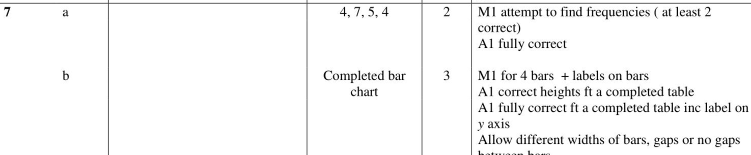 Here is a list of all the nut trees Caterina counted one day. (a) Complete the frequency table for Caterina's list. (2) (b) Draw a bar chart for the information in your table. (3)