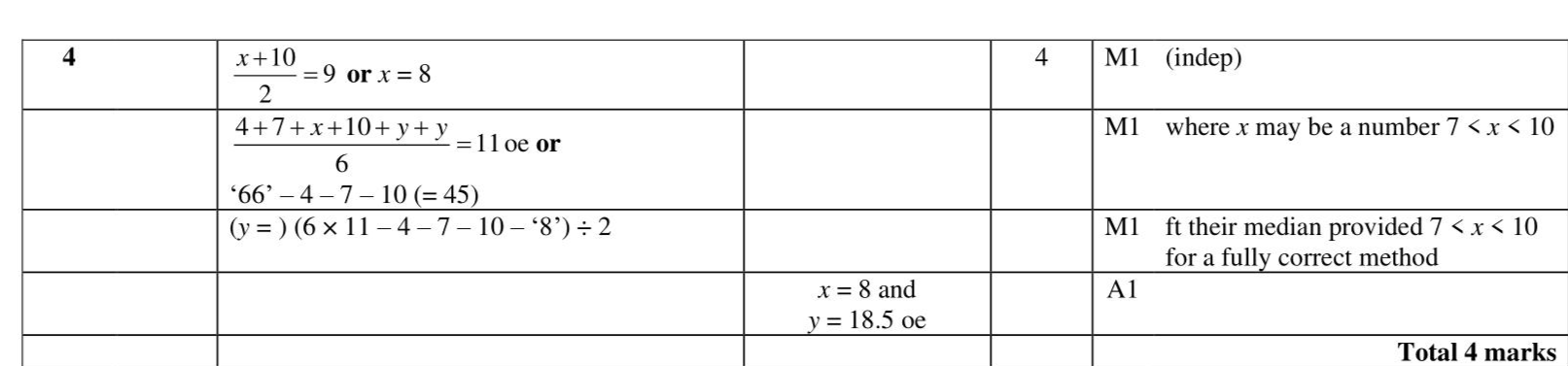 Here is a list of six numbers written in order of size. The numbers have a median of 9 a mean of 11 Find the value of $$\(x\)$$ and the value of $$\(y\)$$. $$\(x=\)$$ $$\(y=\)$$