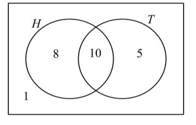 In a class of 24 students, 18 students like homework $$\((H), 15\)$$ students like tests $$\((T)\)$$ and 1 student does not like homework and does not like tests. Complete the Venn diagram to show this information.