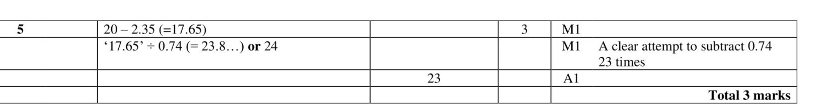 Matt buys a notebook and some pencils. The notebook costs $$\(\$ 2.35\)$$ Each pencil costs $$\(\$ 0.74\)$$ Matt has a total of $$\(\$ 20\)$$ to spend on the notebook and the pencils. He buys the greatest number of pencils that he can. Work out how many pencils he buys.
