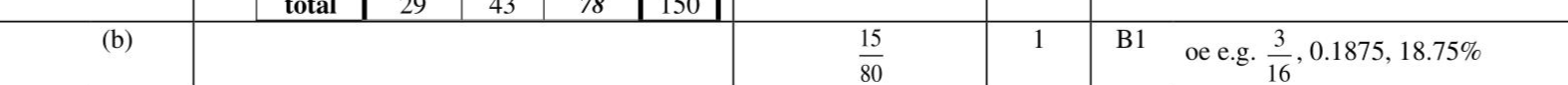 One of the men from these 150 people is selected at random. (b) Write down the probability that this man's main method of transport was train. ................................................... (1)