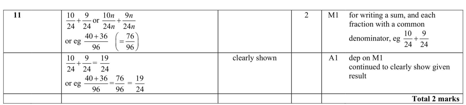 Show that $$\(\frac{5}{12}+\frac{3}{8}=\frac{19}{24}\)$$