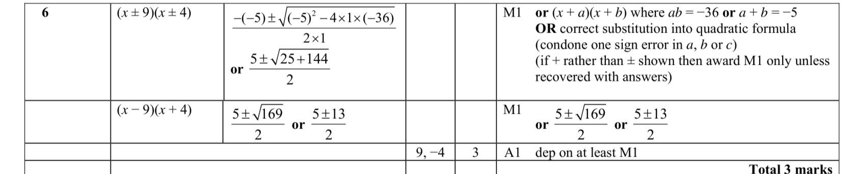 Solve $$\(x^{2}-5 x-36=0\)$$ Show clear algebraic working.