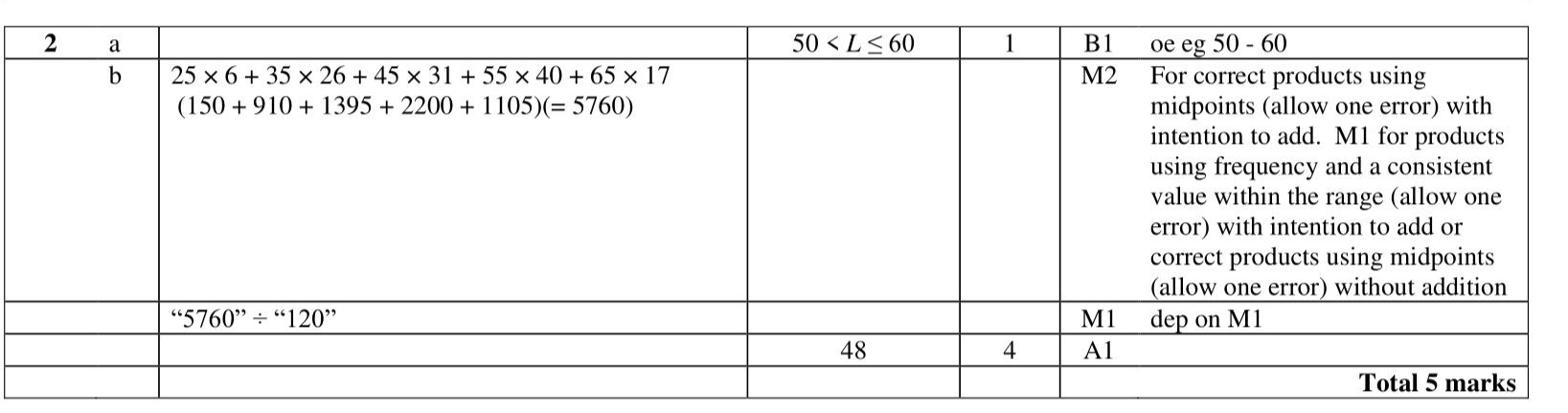 The table shows information about the lengths of time, in minutes, 120 customers spent in a supermarket. (a) Write down the modal class. (1) (b) Work out an estimate for the mean length of time spent by the 120 customers in the supermarket. minutes (4)