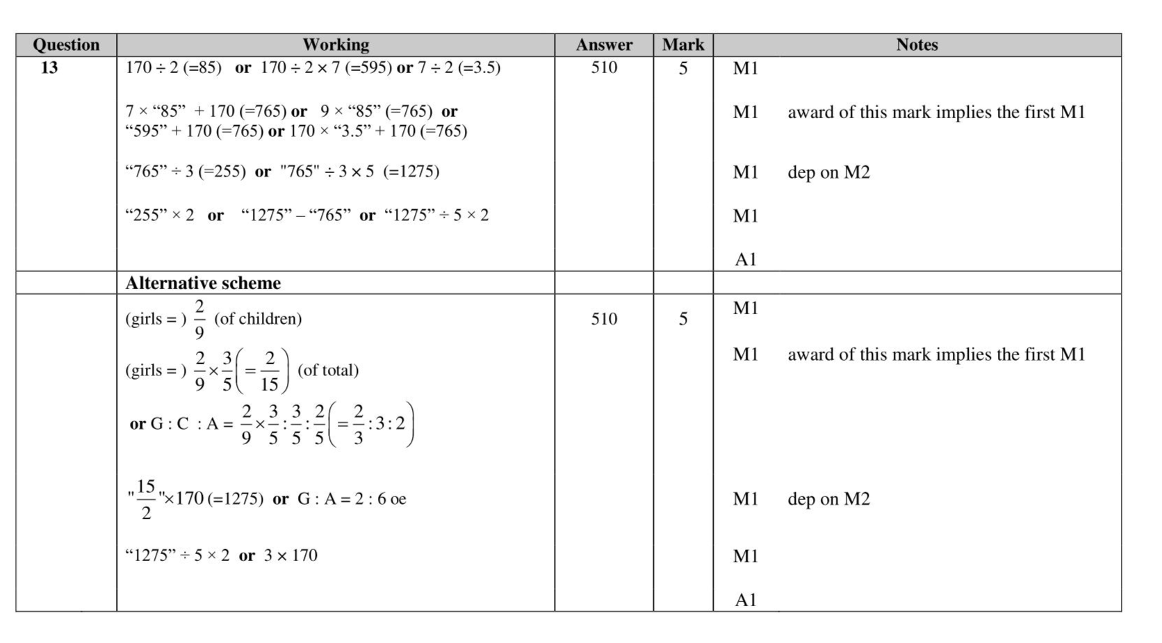 There are some people in a cinema. $$\(\frac{3}{5}\)$$ of the people in the cinema are children. For the children in the cinema, number of girls : number of boys $$\(=2: 7\)$$ There are 170 girls in the cinema. Work out the number of adults in the cinema.