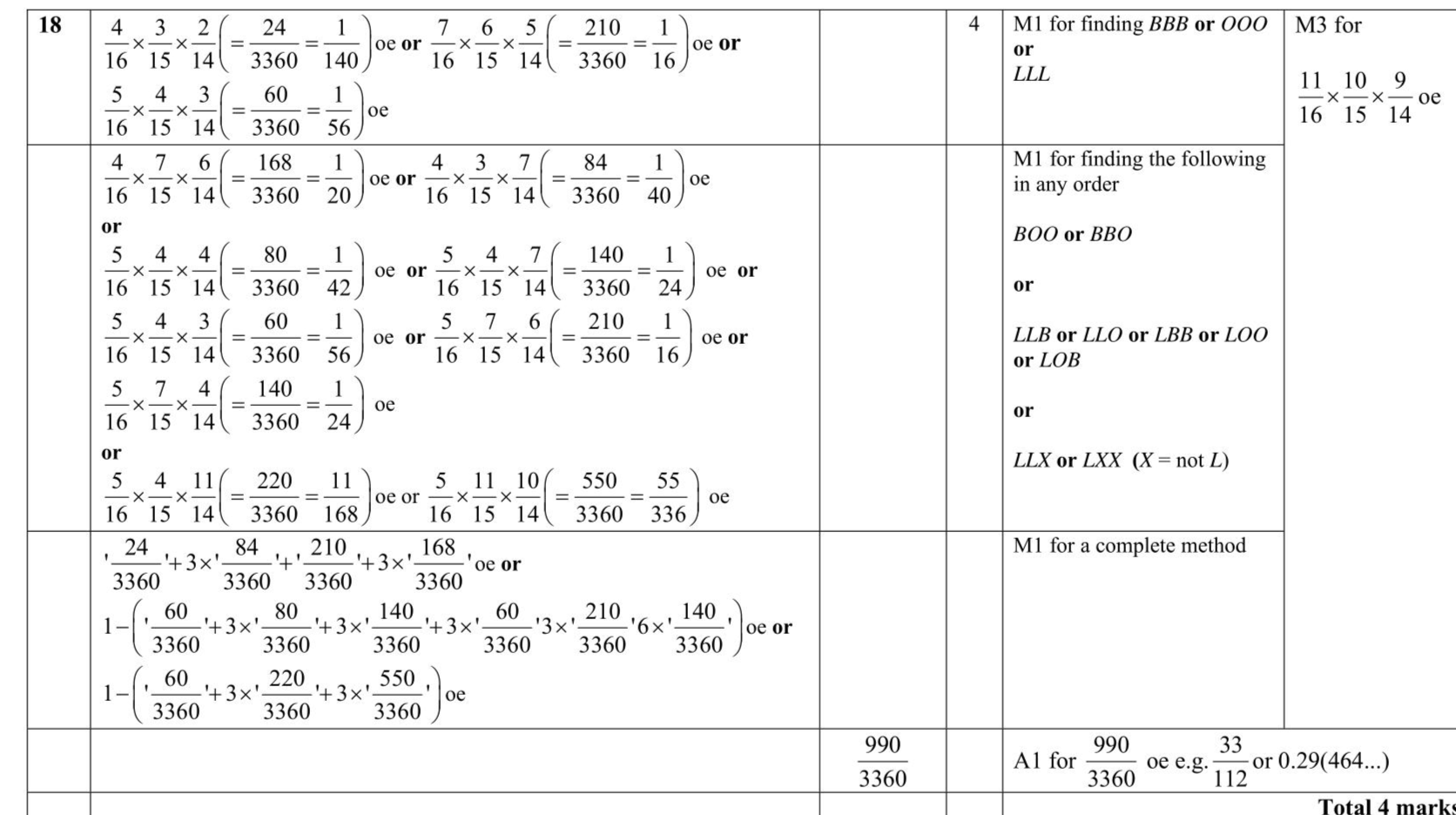 There are 16 sweets in a bowl. 4 of the sweets are blackcurrant. 5 of the sweets are lemon. 7 of the sweets are orange. Anna, Ravi and Sam each take at random one sweet from the bowl. Work out the probability that the 5 lemon sweets are still in the bowl.