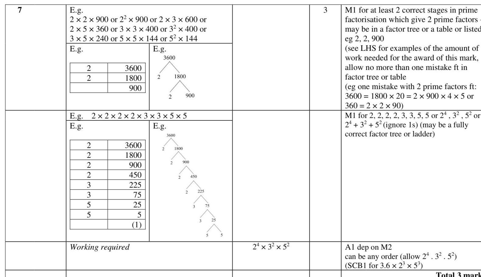Write $$\(3.6 \times 10^{3}\)$$ as a product of powers of its prime factors. Show your working clearly.
