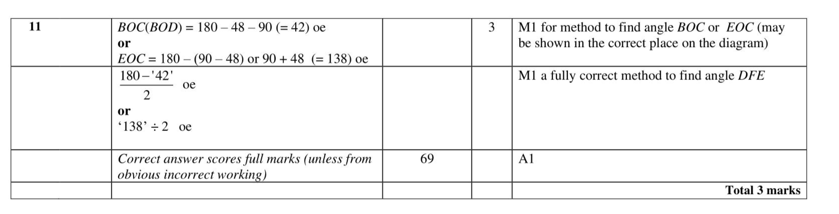 $$\(B, D, E\)$$ and $$\(F\)$$ are points on a circle, centre $$\(O\)$$. $$\(A B C\)$$ is a tangent to the circle. $$\(D C\)$$ is a straight line. $$\(B O E\)$$ is a diameter of the circle. Angle $$\(B C D=48^{\circ}\)$$ Find the size of angle $$\(D F E\)$$. $$\(\circ\)$$