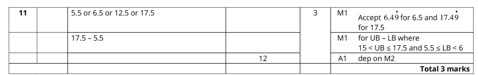 $$\(11 C=b-a\)$$ $$\(a=6\)$$ correct to the nearest integer $$\(b=15\)$$ correct to the nearest 5 Work out the upper bound for the value of $$\(C\)$$ Show your working clearly.