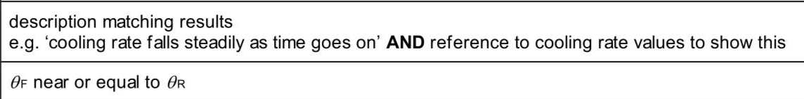 A student investigates the cooling of hot water in a beaker. She uses the apparatus shown in Fig. 2.1. Fig. 2.1 Use your results from (d) to describe the overall pattern of the rate of cooling of the water in the experiment. Justify your answer by reference to your results. . . (ii) Estimate the final temperature $$\(\theta_{\mathrm{F}}\)$$ of the water after several hours. $$\[ \theta_{F}= \]$$
